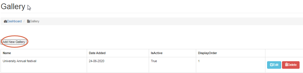 Once all the details are entered, click on Save button to save the newly created Gallery in Photo Gallery Page of the website.