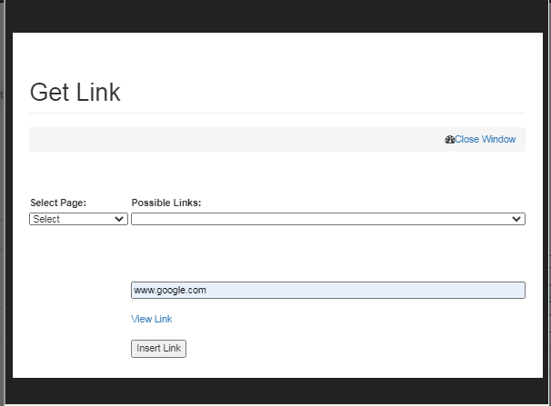 • Click on Get local Link to see a window popping up on the screen; choose from the Select page drop down menu where you want to redirect the Page, once the user clicks on the Particular link. Click on Insert Link.