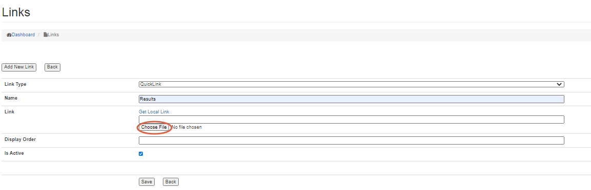 From the select drop down menu, choose the Link (Quick Link, Download and Footer Link) that you want to edit.