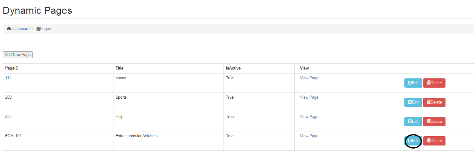 • To Delete Page, click on the Delete button next to Edit button.