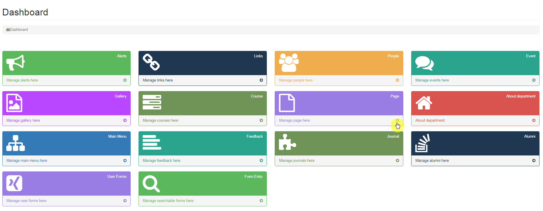 Page is a feature in Content Management system wherein a user can add a Page to the website and link it to the main menu, link section of the website. Page can be edited and deleted.