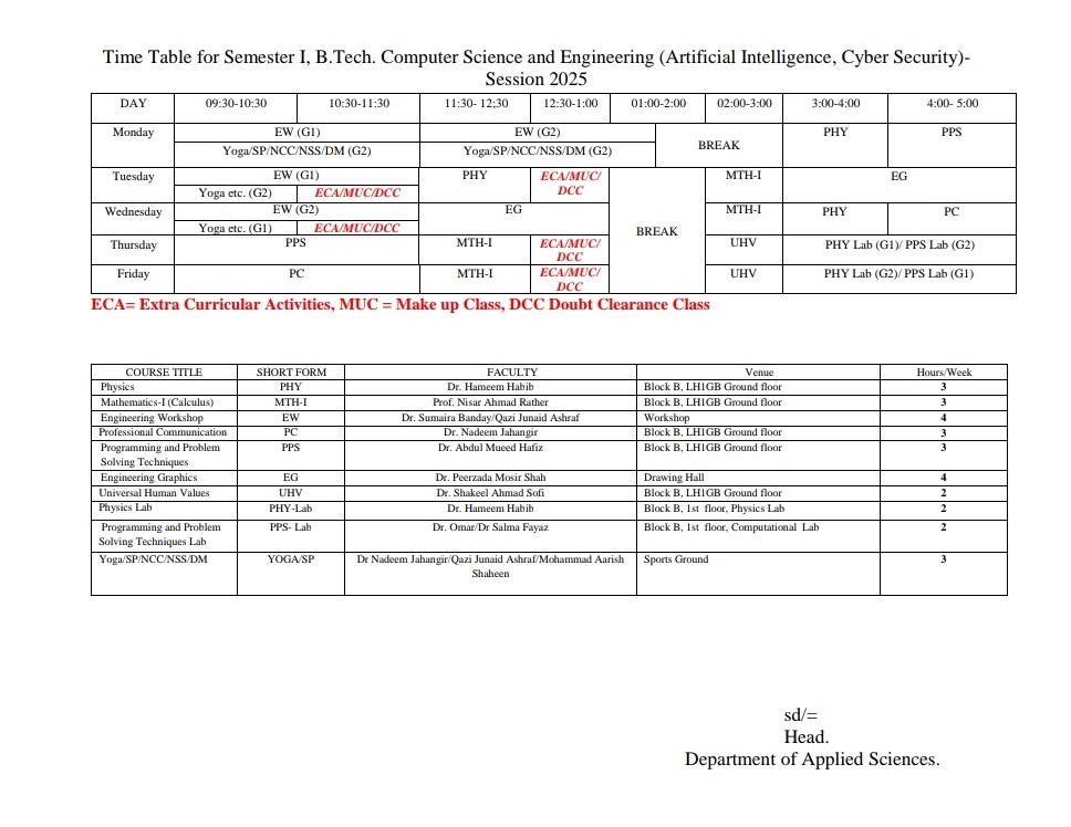 The Department of Computer Science Engineering (Cyber Security and AI/ML) at the Institute of Technology, Zakura Campus, University of Kashmir, is focused on building a strong foundation in two crucial areas of modern computing. The department provides specialized programs in Cyber Security and Artificial Intelligence & Machine Learning. It emphasizes clear understanding, analytical thinking, and practical application.