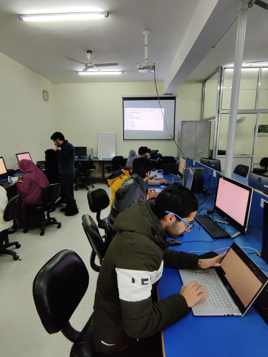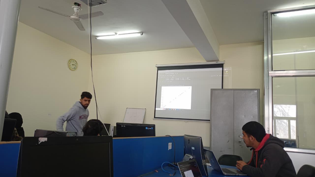 Er. Khalid teaching Matplotlib, with Er. Haroon and Er. Aaqib assisting students